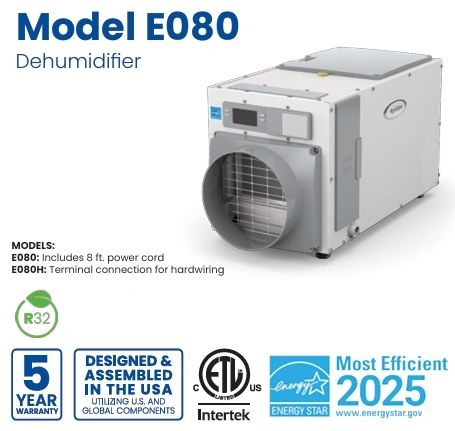 This is a ducted system. E80 Removes up to 80 pints a day. Digitally controlled, once desired humidity level is reached the system pauses making this energy star dehumidifier ideal.